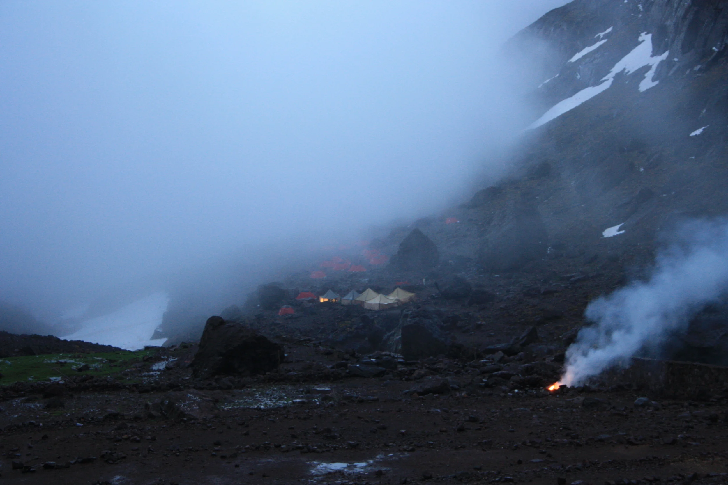 As the light faded into darkness and the clouds rolled into the valley, we peered through the window with anticipation of the impending summit attempt. Through the fog I could see the lights of the dozen or so tents that sat amongst the mist at the base of the rocky steppe. Tomorrow we would summit the third highest mountain in Africa.